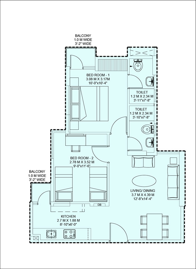 Note - (1 sq.m.=10.764 sq.ft.)