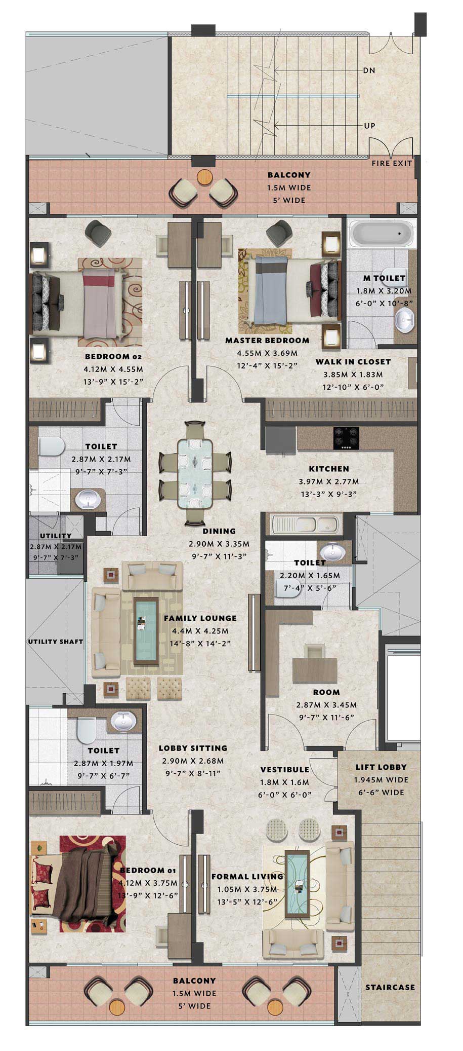 Lavish 4 BHK floors offer chic living space, 4 grand bedrooms and modern fittings throughout, there is nothing dated about these homes. Built for the contemporary urban dweller, every home offers the best in style, design, comfort and luxury.
